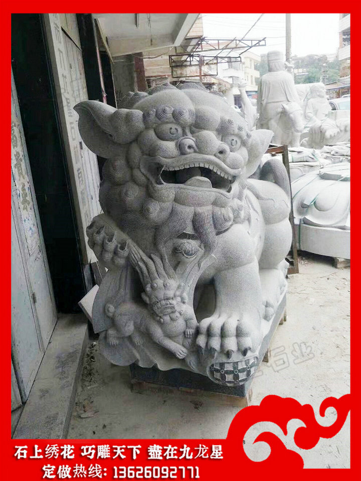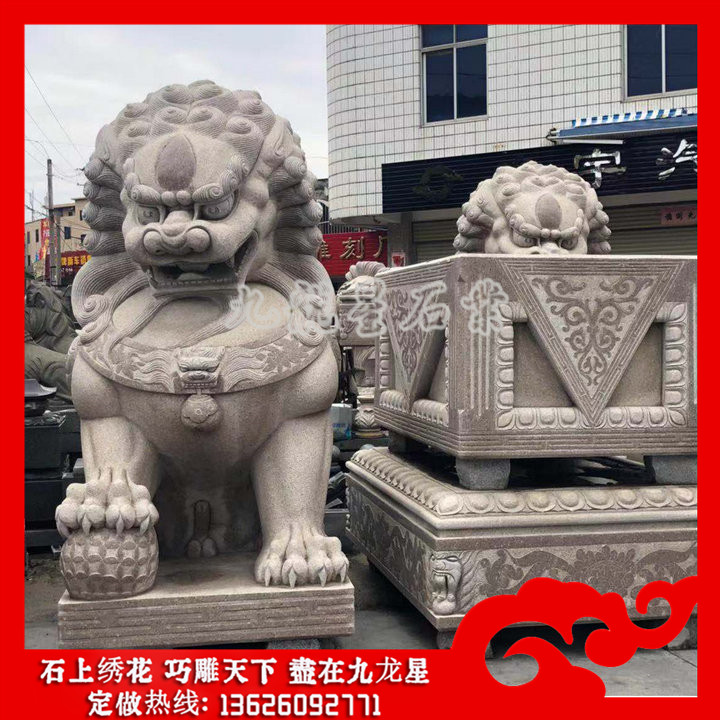鎮(zhèn)宅石雕獅子的擺放也有規(guī)矩,成對稱性,位置與我國男左女右的習(xí)俗相同。即當(dāng)人走出大門時,雄獅安放在人的左側(cè),而雌獅則是在人的右側(cè)。