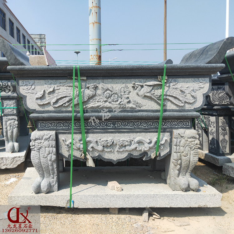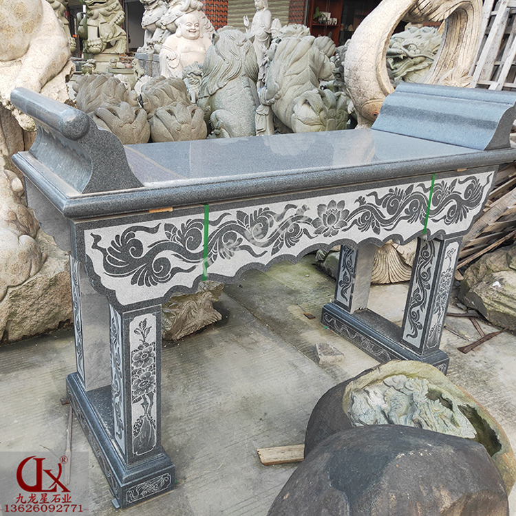 在寺廟宗教文化里,石頭供桌圖片大全的大小,材質(zhì),以及擺放的位置都是有講究的,及雕琢所選用的石材。其間,花崗巖和青石質(zhì)地堅硬,是石頭供桌常用的兩種雕琢石材。