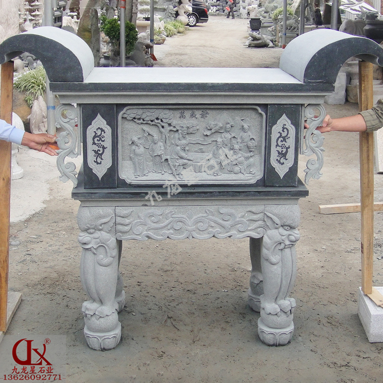 大理石石雕供桌常與天然幾、八仙桌和兩只“獨(dú)座”,或一對(duì)扶手椅構(gòu)成一組家具。在寺廟佛堂里佛桌供桌更是必不可少的。在供桌的制作材料里,石雕供桌更是以其典雅造型,質(zhì)樸自然,美觀大方,精美的雕刻深得人心,而且石雕供桌也更經(jīng)久耐用。