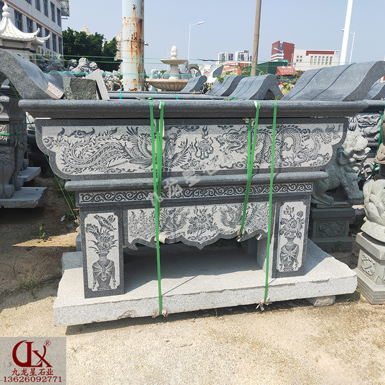 寺廟佛前常備有佛燈供桌石雕,用于日常的祭拜供奉。寺院供桌石雕雕刻選擇顏色較為符合寺廟氣息的青石雕刻,明暗相間給人一種古樸寧?kù)o的感覺(jué),加上四周花紋圖案雕刻得相當(dāng)?shù)轿?,讓人感覺(jué)細(xì)致嚴(yán)謹(jǐn),給前來(lái)參拜的人一種心理暗示,達(dá)到更加虔誠(chéng)的心理引導(dǎo)作用。