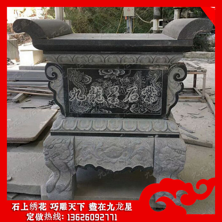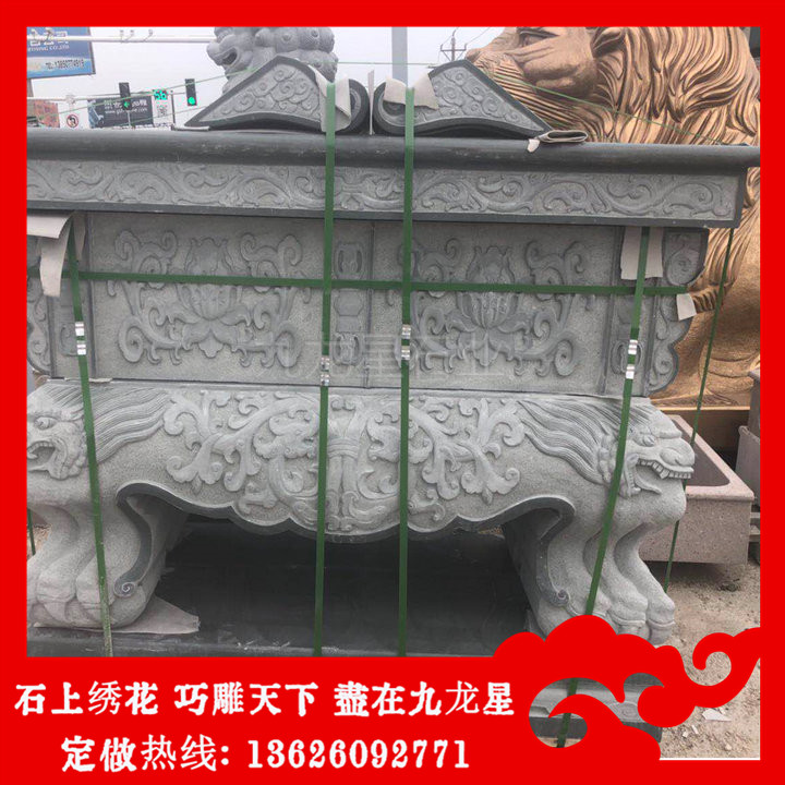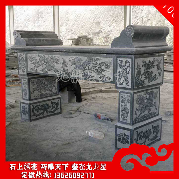 像有的石雕供桌我們是采用優(yōu)質(zhì)的花崗巖雕刻而成,顏色清新淡雅,樣式是屬于簡(jiǎn)單的款式,四周點(diǎn)綴的花草圖案采用圓雕浮雕等工藝手工制作,給人的第一種是古典文雅的雕刻樣式,也給人一種莊重感,給前來(lái)參拜進(jìn)香者,一種觀念上的心理暗示,從而達(dá)到虔誠(chéng)者更虔誠(chéng)的心理引導(dǎo)作用。若問(wèn)石雕供桌哪里有賣,就來(lái)惠安九龍星石業(yè)。