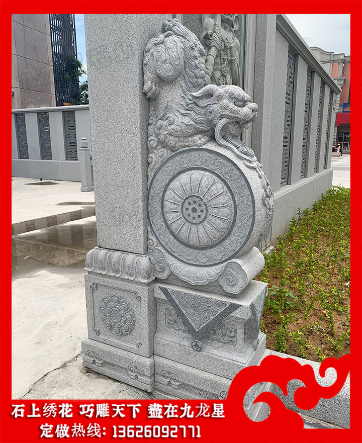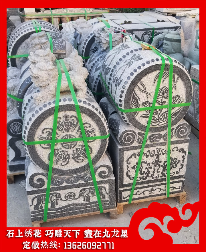石雕雕塑抱鼓石是作為承托和穩(wěn)定門板門軸、加固或安裝門檻的一個構(gòu)件,有利于防止門板受外力晃動,大大增強門框的穩(wěn)定性,起到聯(lián)系門檻的作用。另經(jīng)枕石墊高后還可以防水防潮。外部抱鼓石主要是承擔(dān)著大門板的平衡重功能,以其前部的重量來平衡門板轉(zhuǎn)動時的重力。