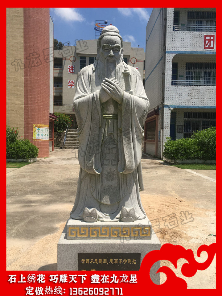 校園人物石雕的人物雕刻實(shí)際上來源于人們對于名人,偉人的一種欽慕之情,在古代的學(xué)堂,孔夫子就是擺放在教室的,以前是以一幅畫來展示,后來人們?yōu)榱烁尤?,更加?xì)致,更加具體的了解到孔圣人,所以人們開始把他做成石雕,木雕,玻璃鋼雕,泥塑,樹脂雕等等。在西方,人們開始的人物大多以大理石來加工的,特別是后期在美術(shù)方面,大部分采用了石膏來代替石雕作品,讓雕刻品更加的潔白無瑕,但是石膏的作品穩(wěn)定性和耐久度并不能令人滿意,所以白色的漢白玉石雕一度成為代替石膏作品擺放在室外的一種重要裝飾工藝品,而漢白玉的石雕人物雕塑作品算是校園石雕中非常重要的一個組成部分,用細(xì)膩的雕刻手法完全可以還原人物的各種動作表情,并且不會顯得不夠自然。
