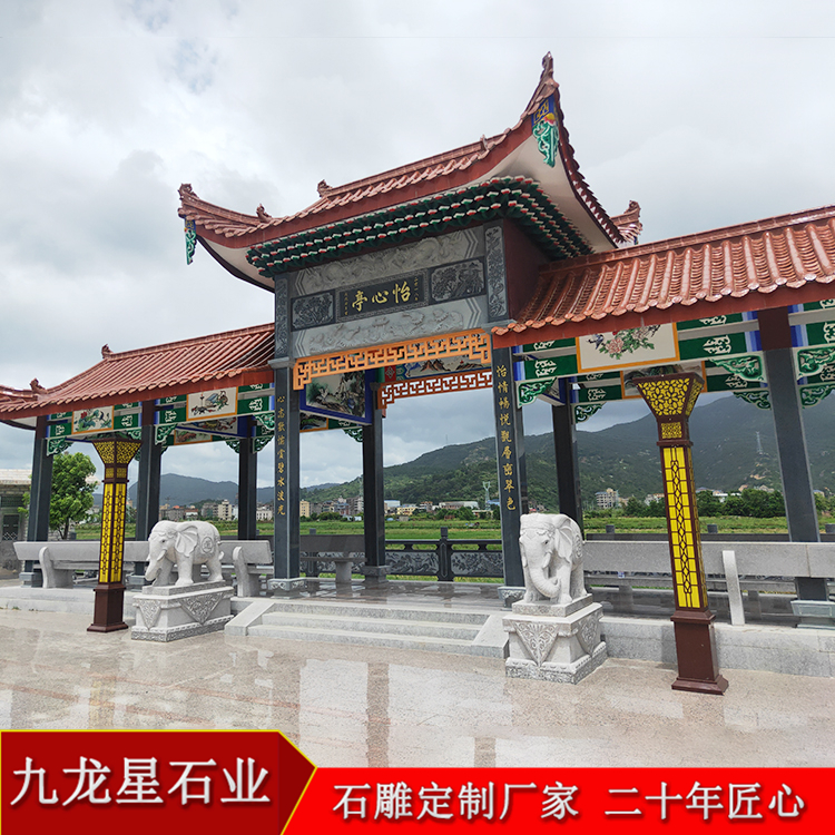 石雕涼亭的平面形狀直接決定了亭的造型。平面是正多變形的亭,一般適合攢尖頂?shù)淖龇āF矫媸浅书L方形時(shí)適合歇山式的做法;其次,亭造型的意境美重要在于屋頂,古建六角涼亭價(jià)格以怎樣的一種形象出現(xiàn)在景區(qū)中,主要靠屋頂決定。亭屋頂和亭身的高度對(duì)亭子的造型也起著決定的作用。屋頂翼角的起翹高度與屋頂?shù)母叨扔幸欢P(guān)系。