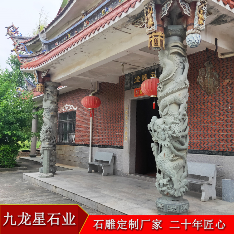 定做祠堂青石龍柱 石雕滾龍柱圖片——九龍星石業(yè)二十年工藝,自帶礦山。