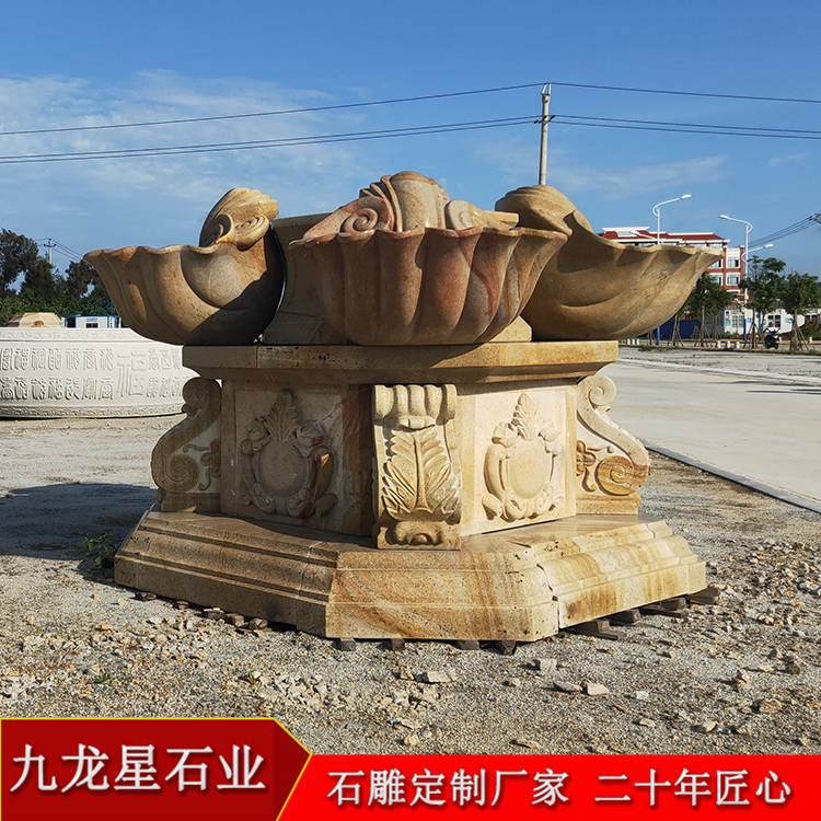 黃銹石噴泉 歐式水缽雕塑圖片大全——九龍星石業(yè),可定制。