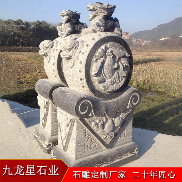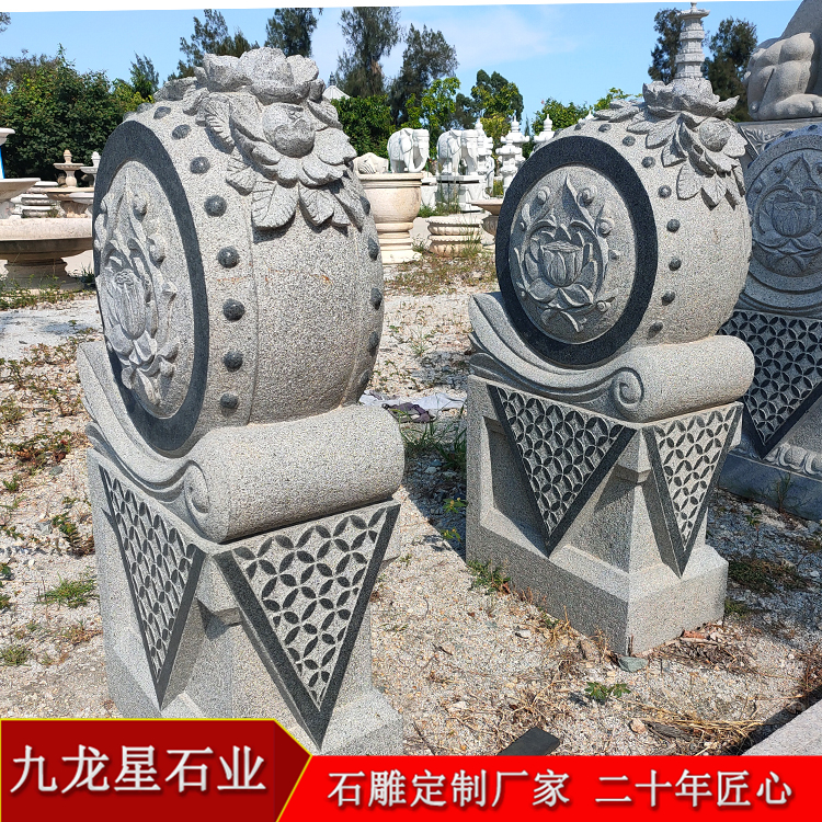 青石雕刻門墩抱鼓石一般是指位于宅門入口,形似圓鼓的兩塊人工雕琢的石制構(gòu)件,因為它有一個猶如抱鼓的形態(tài)承托于石座之上,故此得名。