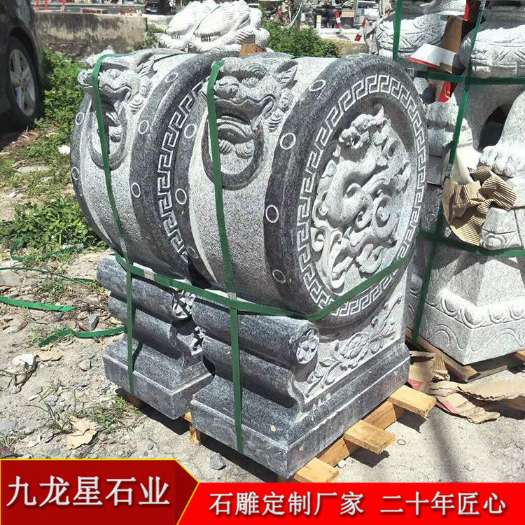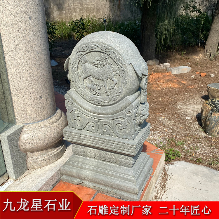 大門前的石雕抱鼓石 青石雕刻門墩抱鼓石——九龍星石業(yè)。