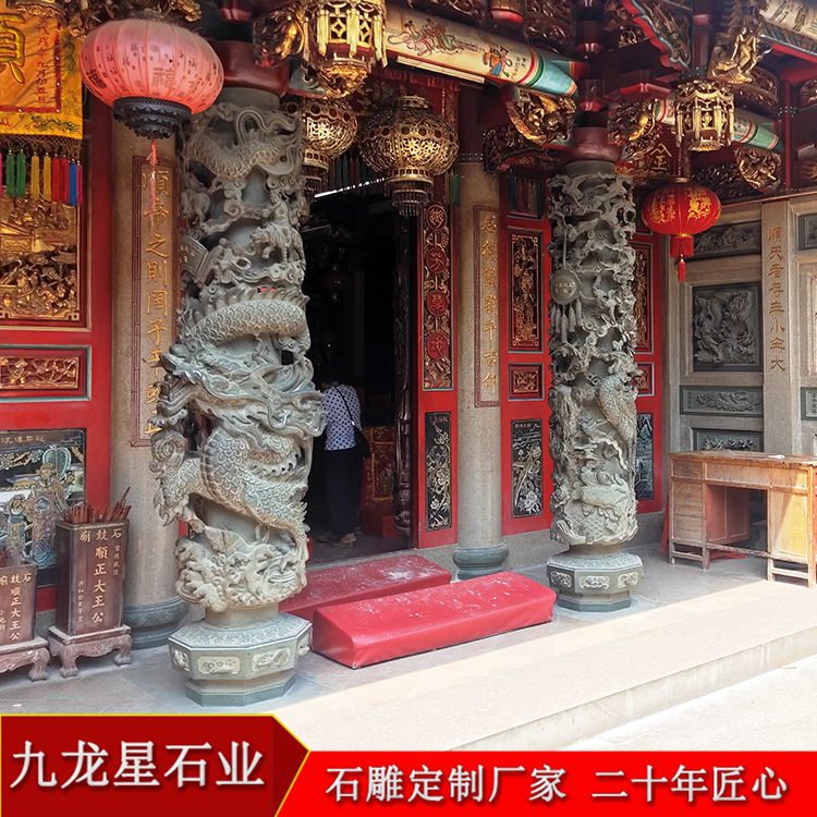 青石盤(pán)龍柱圖片 祠堂門(mén)口的龍柱多少錢(qián)——九龍星石業(yè)。