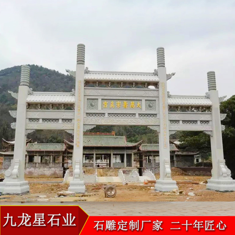 很多人認(rèn)為寺院牌坊雕刻只是需要擺放在寺廟的最外面就可以了,其實(shí)根本不是這樣的,寺廟的山門(mén)在排列上一定要遵從寺廟建筑學(xué)的意義,整座寺廟從開(kāi)始建造就并不是單一的作品,而是整體結(jié)合的作品,寺院牌坊和天王殿要用一根垂直的直線連接在一起,并且zui好是南北向的中軸線,也可以用東西走向的中軸線,但是南北走向的線是zui好的,畢竟坐北朝南的建筑在中國(guó)建筑上是zui佳的風(fēng)水位置,然后南北走向的線路依次排列山門(mén)牌坊、天王殿、大佛殿、大雄寶殿,如果還有其他殿也是按照這樣的排列順序依次排列下去。寺院牌坊之所以一定要和天王殿排列成一條直線,所以位置和方位一定要千萬(wàn)注意。