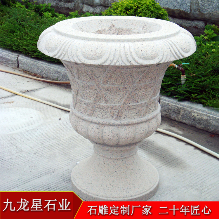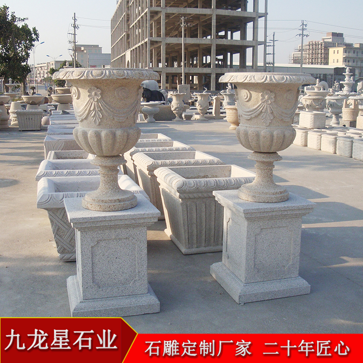 大石頭歐式花盆 花崗巖成品花缽廠家——九龍星石業(yè)。