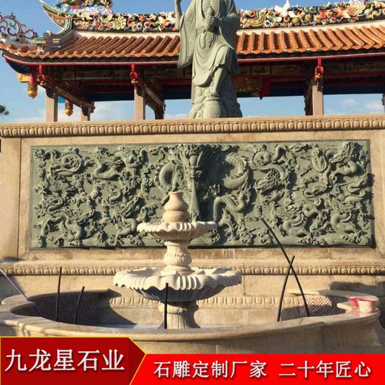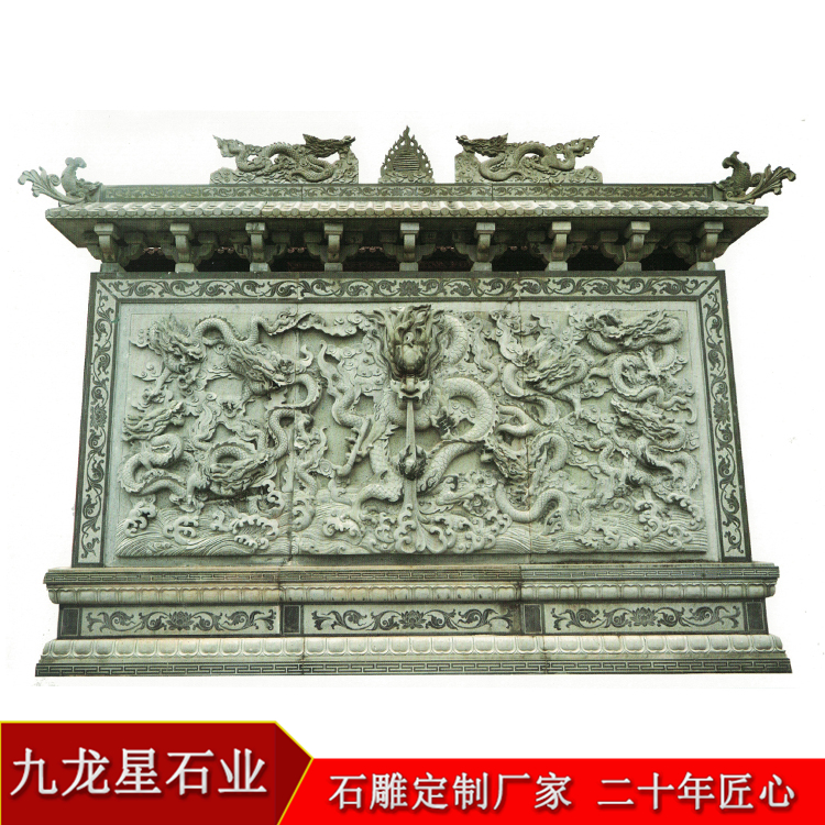 青石雕刻九龍壁圖片 石雕九龍壁廠家