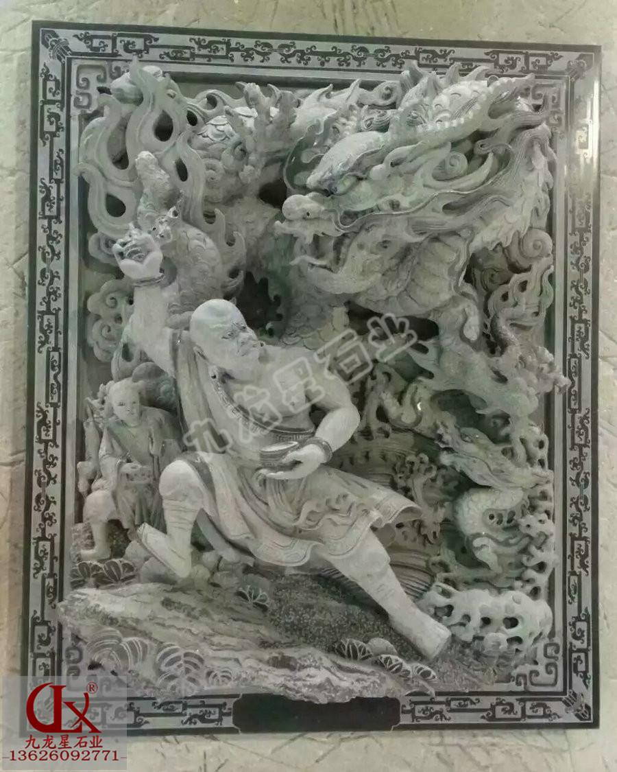 石雕壁畫(huà)十八羅漢就是我們根據(jù)供奉和供人欣賞的需要所繪,是佛教石材浮雕壁畫(huà)的七種類(lèi)型之一。就寺廟十八羅漢浮雕而言,大約有三種類(lèi)型,第一是眾多的羅漢組合像.如十大弟子像、十六羅漢像、十八羅漢像、五百羅漢像等;第二是由十大弟子或十六羅漢中選繪的單一羅漢像,如迎葉像、須菩提像、富樓那像、賓頭盧像、降龍、伏虎像等,第三是根據(jù)畫(huà)家留下的寺廟十八羅漢浮雕樣式加以改進(jìn),做成適合浮雕題材的旅羅漢風(fēng)格,不拘尺度地雕刻比丘形象而題為羅漢.如巖居羅漢、赤腳羅漢、玩蓮羅漢、羅漢出山、羅漢補(bǔ)鈉等等。石雕壁畫(huà)十八羅漢。